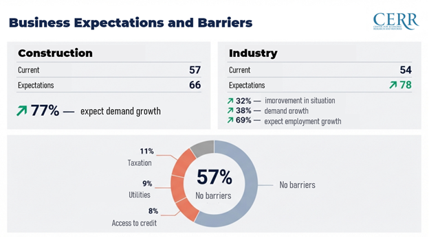 70% of entrepreneurs expect demand for their services to grow over the next three months, compared to 58% in January 2025. The share of enterprises expecting to increase employment in the coming quarter amounted to 61%, up from 54% a year earlier.