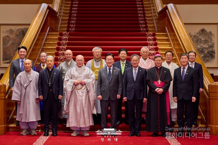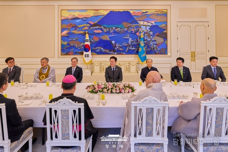 Finally, President Lee requested that religious leaders provide clear guidance on critical issues like public livelihoods and peace on the Korean Peninsula, helping to prevent national security and diplomacy from being consumed by partisan political strife. When the leaders remarked, "This is all our responsibility," President Lee responded, "It is our collective responsibility."