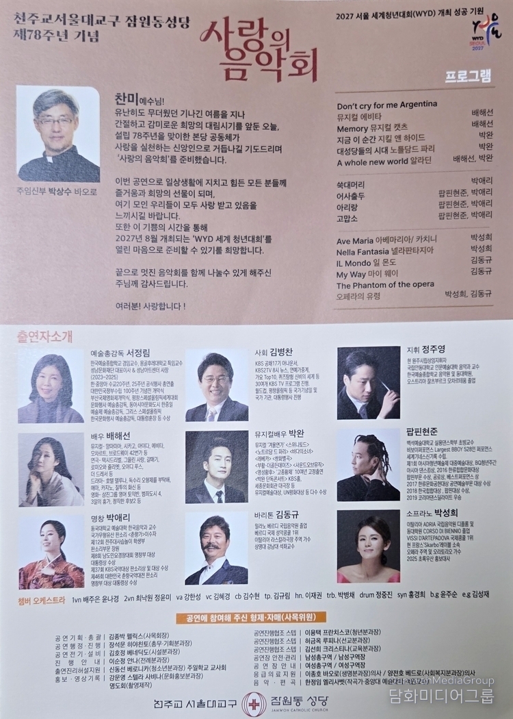 “WYD 2027, Let's Prepare with Open Hearts” – A community united through music Jamwon-dong Cathedral marks its 78th anniversary this year. This parish community, where generations from the elderly to youth and children come together, will reaffirm its strong solidarity in faith through this concert.